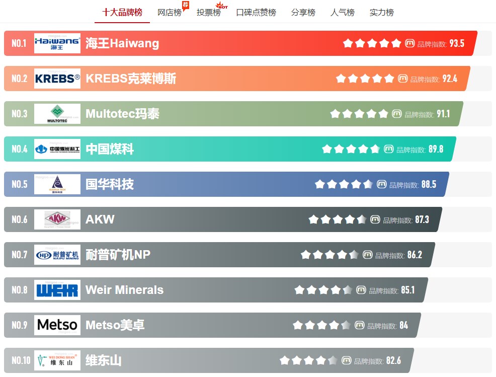 Multotec瑪泰、中國煤科、國華科技、AKW、耐普礦機NP、Weir Minerals、Metso美卓、維東山等,